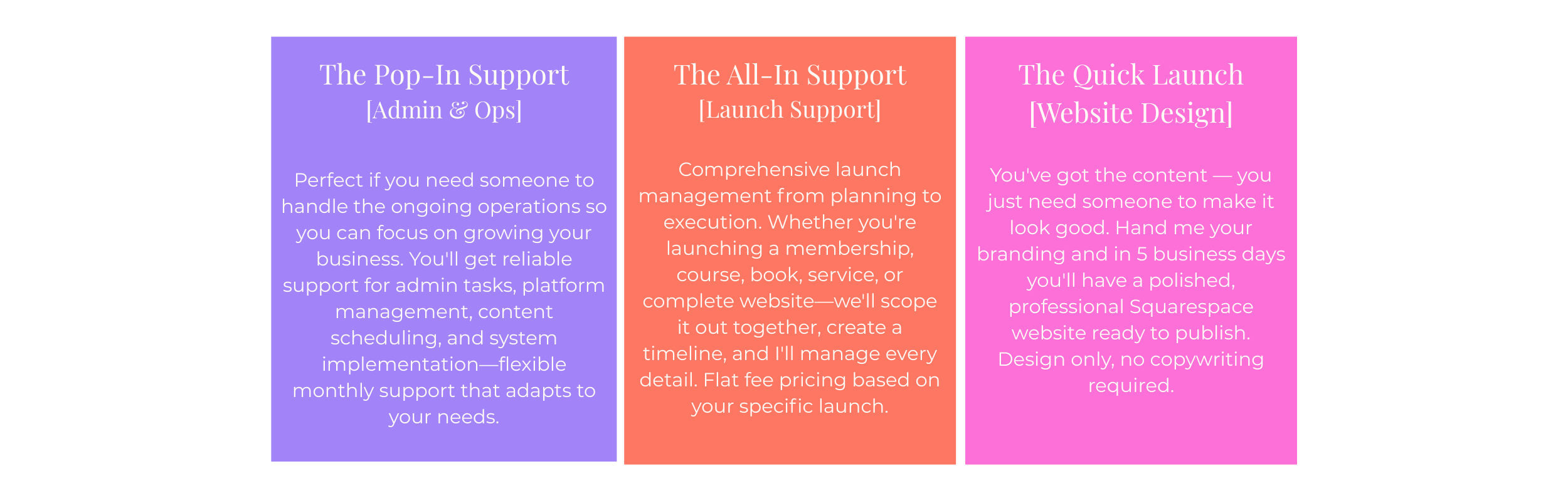 I jump in and figure out what's actually needed, build the systems, and organize everything so your business finally runs smoothly.