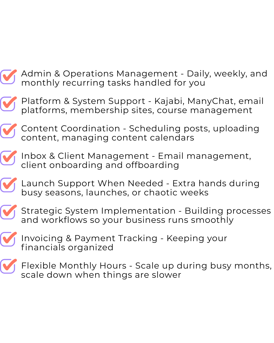 Flexible operations support for entrepreneurs who need reliable help—without the retainer commitment.