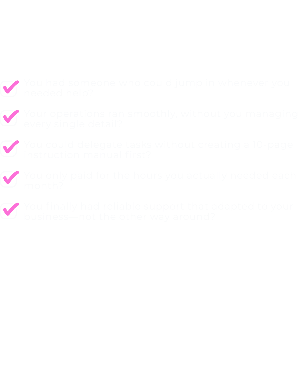 This isn't a dream scenario. It's what happens when you have a reliable operations partner who can jump in without needing perfect instructions... instead of waiting until you "get organized first."